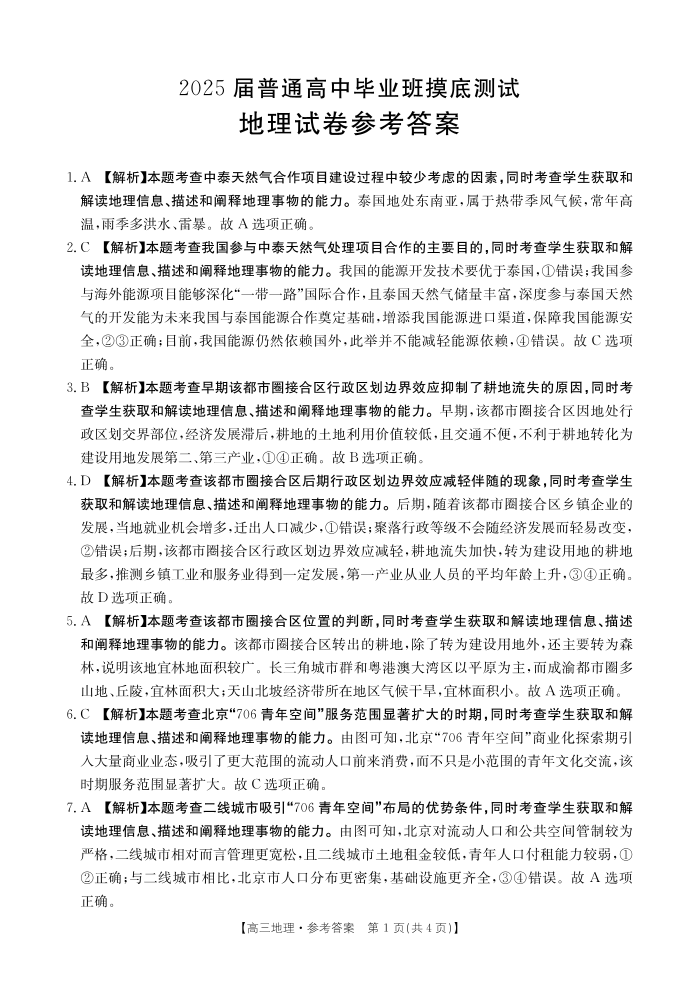 广西省南宁市七市联考2025届普通高中毕业班高三摸底测试地理答案