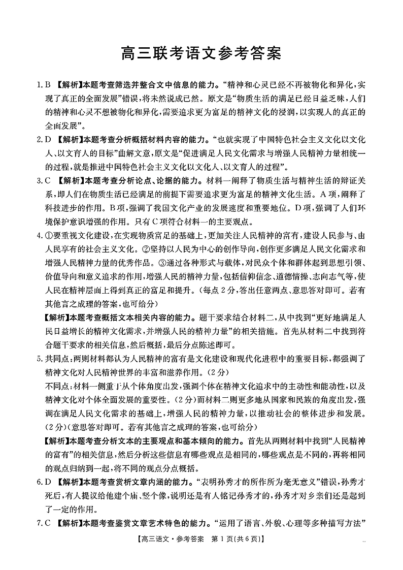 贵州省部分高中2025届高三上学期10月联考语文答案