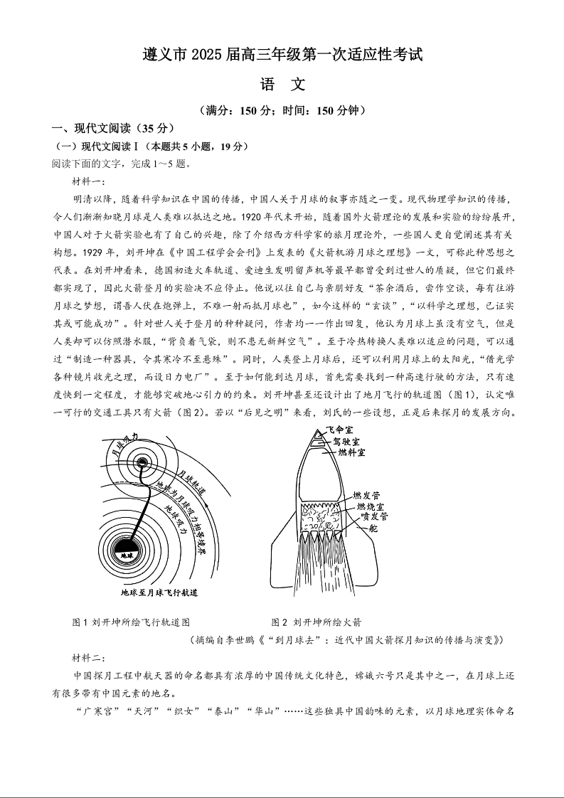 贵州省遵义市2025届高三上学期第一次适应性考试(一模)语文+答案