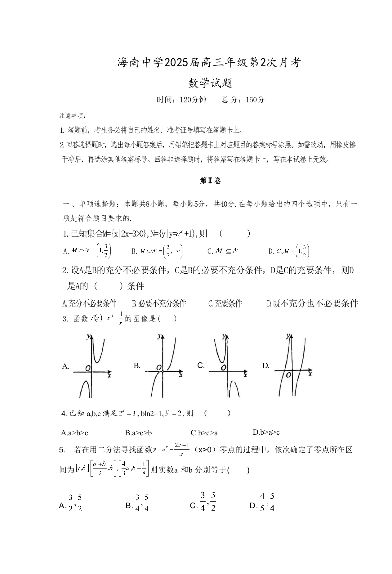 海南省海南中学2025届高三上学期10月月考数学+答案