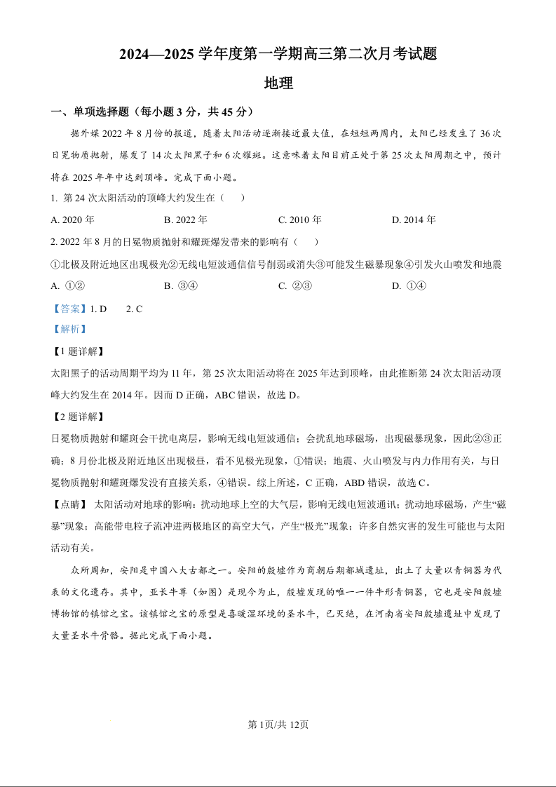 海南省文昌中学2025届高三上学期第二次月考(解析版)