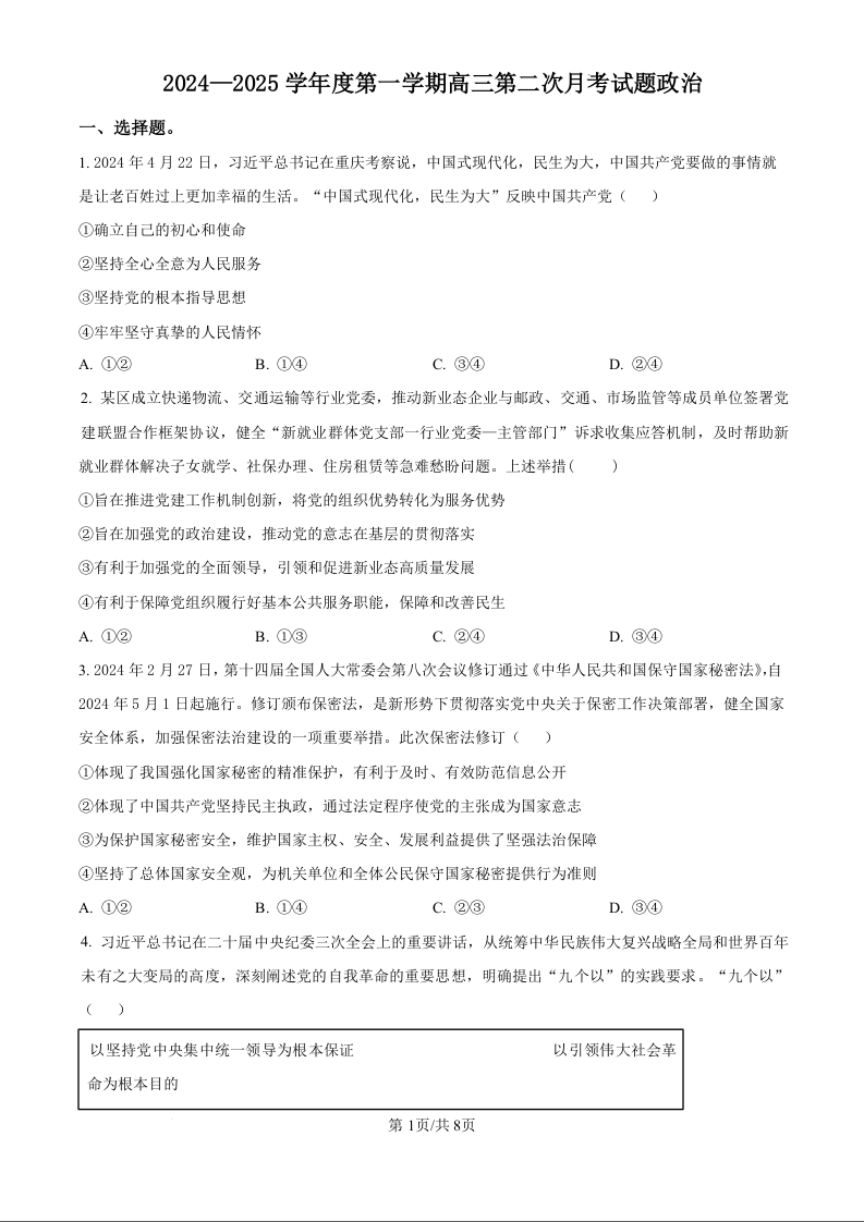 海南省文昌中学2025届高三上学期第二次月考政治试题(原卷版)
