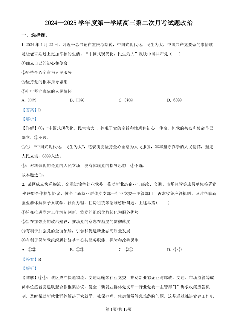 海南省文昌中学2025届高三上学期第二次月考政治试题(解析版)
