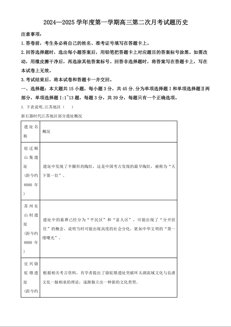 海南省文昌中学2025届高三上学期第二次月考历史+答案