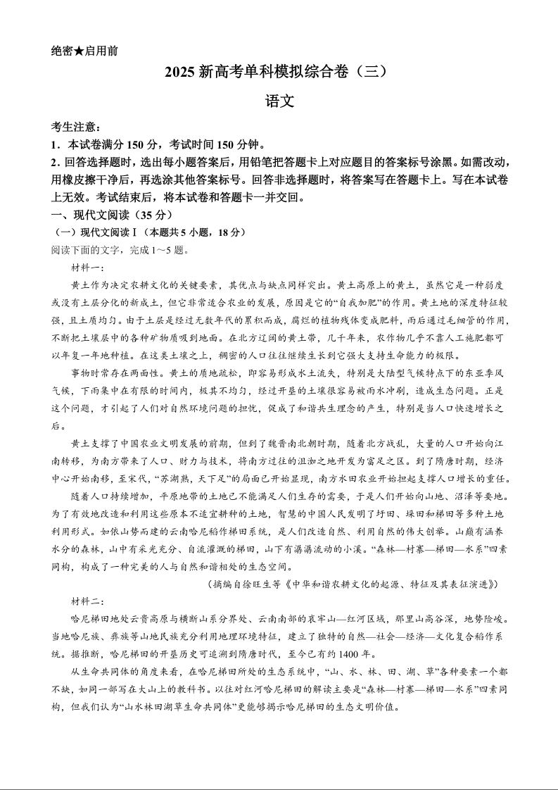 河北省2025届高三上学期新高考单科模拟综合卷(三)语文+答案
