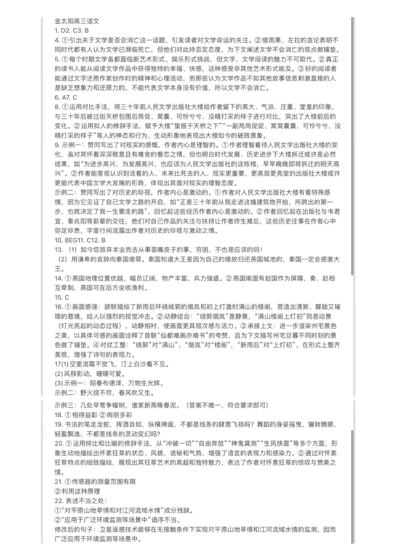 河南省部分高中2024-2025年高三年级联考(三)语文答案