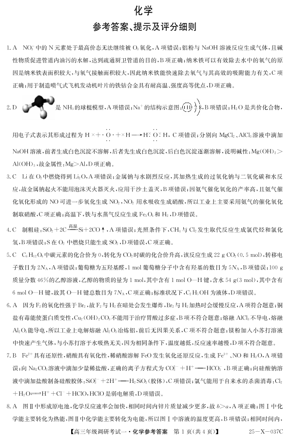 河南省新高中创新联盟TOP二十名校2025届高三上学期10月调研考试(一)化学答案