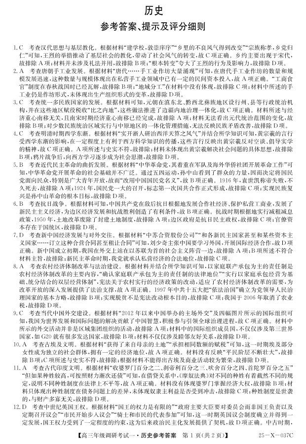 河南省新高中创新联盟TOP二十名校2025届高三上学期10月调研考试(一)历史答案