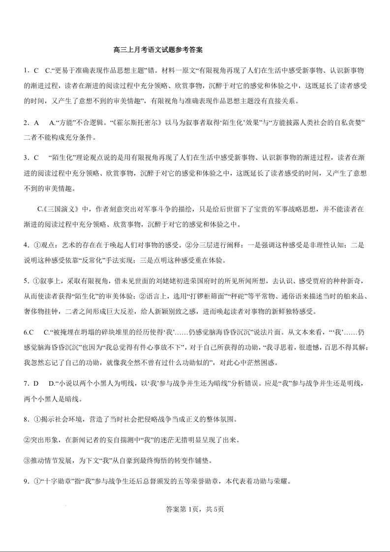 黑龙江省哈尔滨师范大学附属中学2025届高三上学期10月月考语文答案