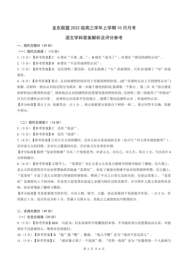 黑龙江省部分高中2025届高三上学期10月月考语文答案