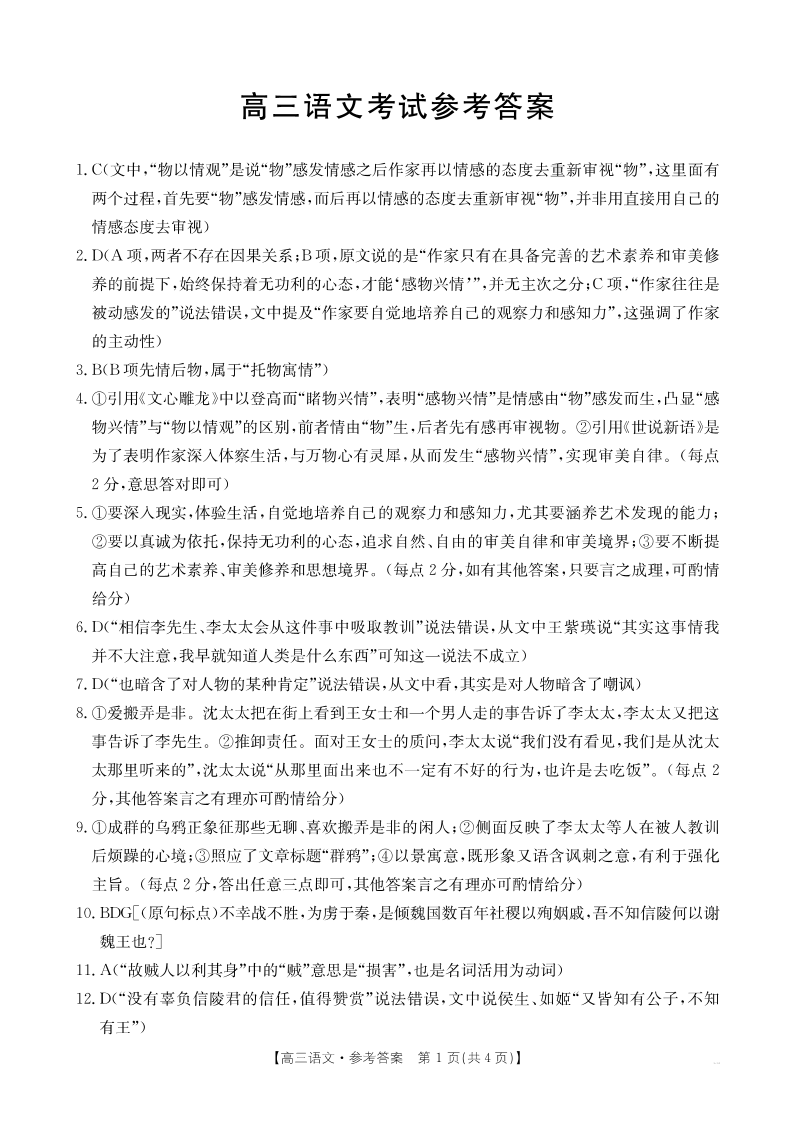 湖北省部分学校2024-2025学年高三上学期12月联考语文答案