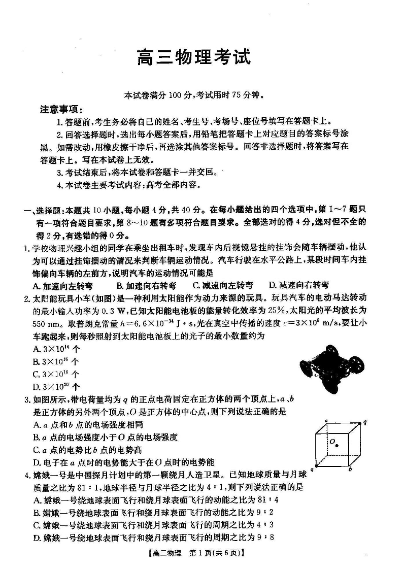 湖北省部分学校2024-2025学年高三上学期12月联考物理
