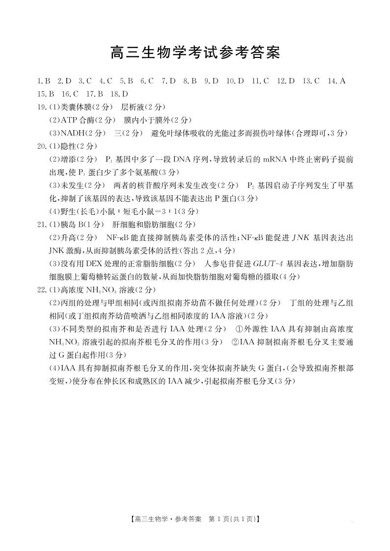 湖北省部分学校2024-2025学年高三上学期12月联考生物答案