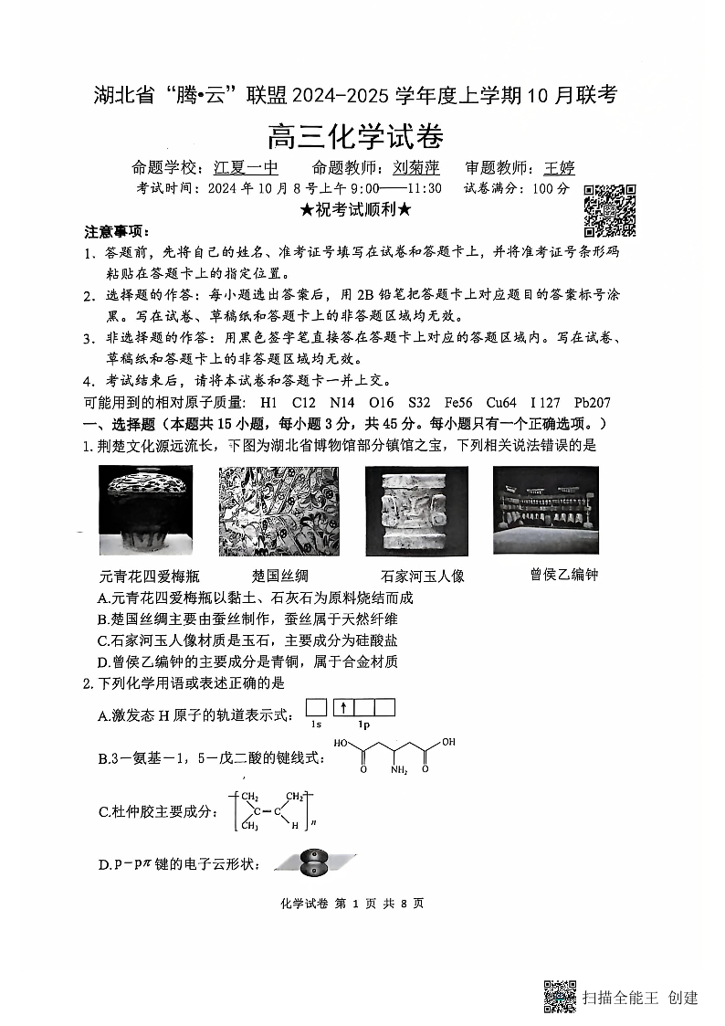 湖北省腾云联盟2024-2025学年度上学期10月联考化学试卷
