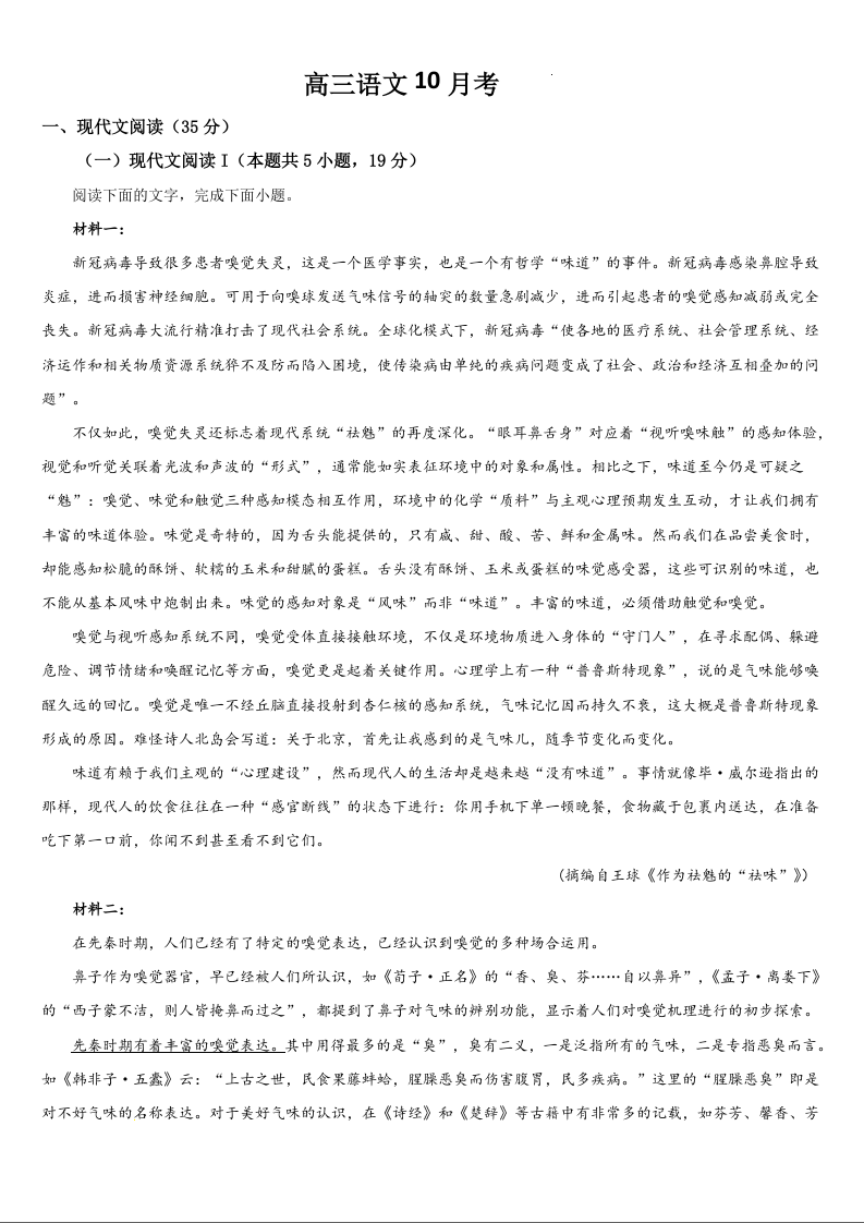 吉林省通化市梅河口市第五中学2025届高三上学期10月月考语文+答案