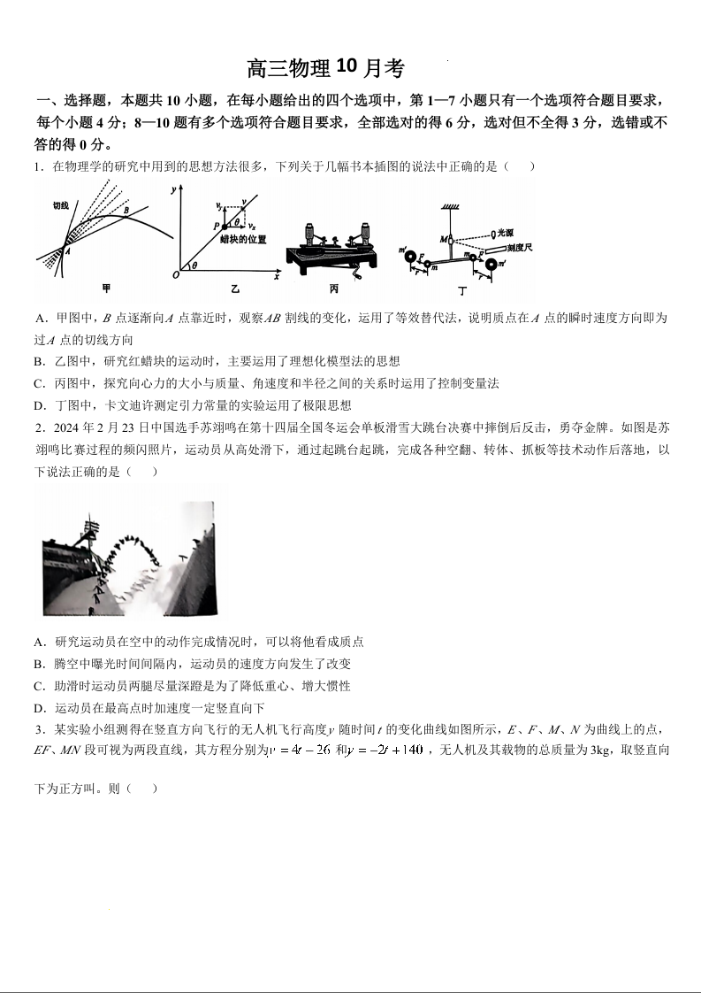 吉林省通化市梅河口市第五中学2025届高三上学期10月月考物理+答案