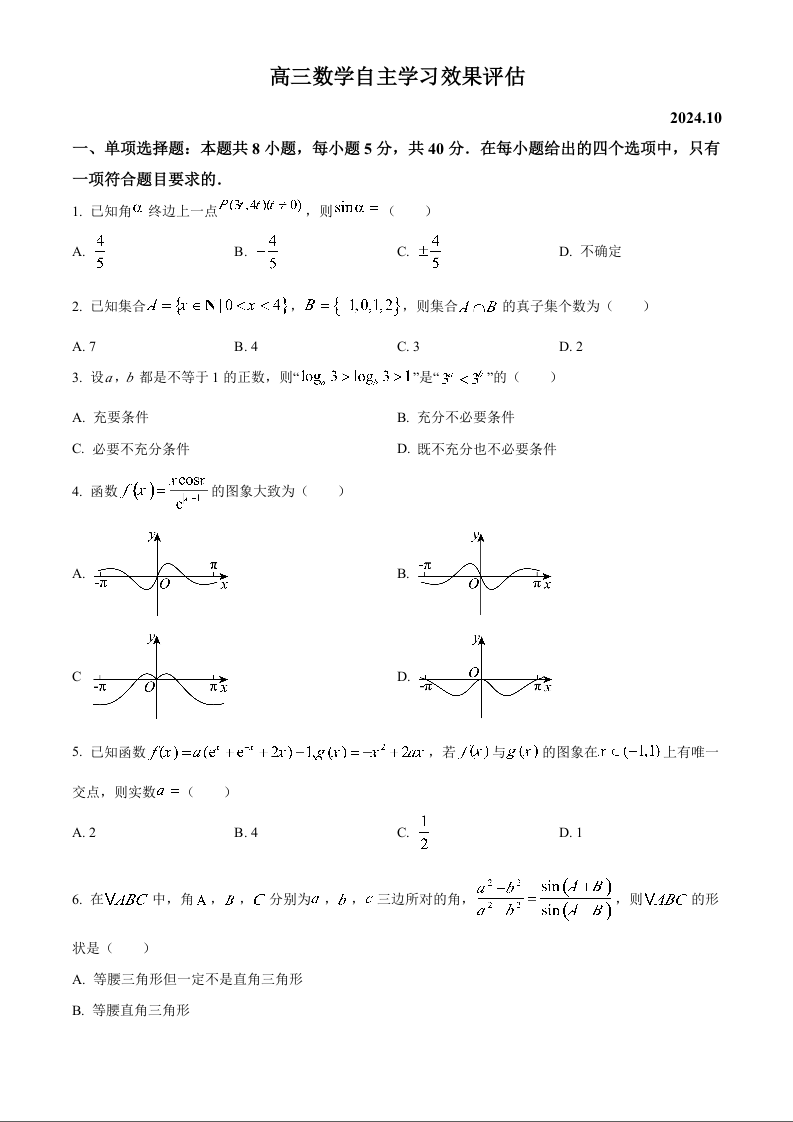 江苏省扬州中学2025届高三上学期10月月考数学+答案