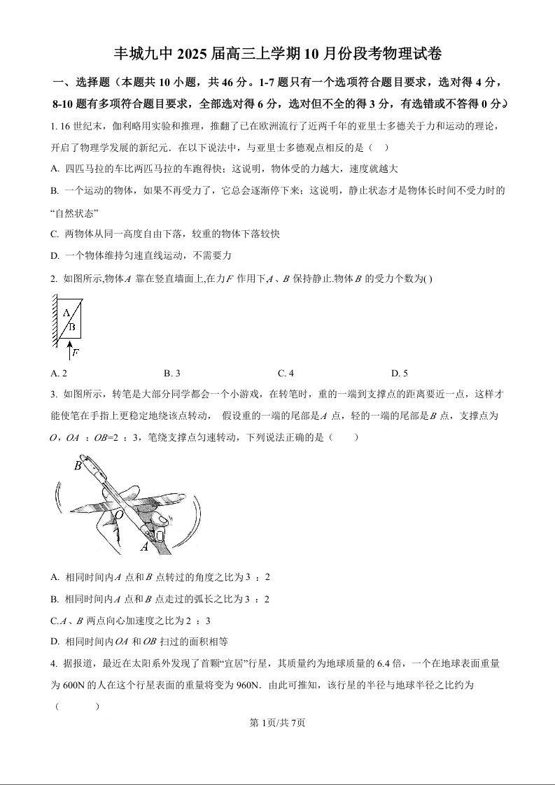 江西省宜春市丰城市第九中学2024-2025学年高三上学期第一次段考(原卷版)