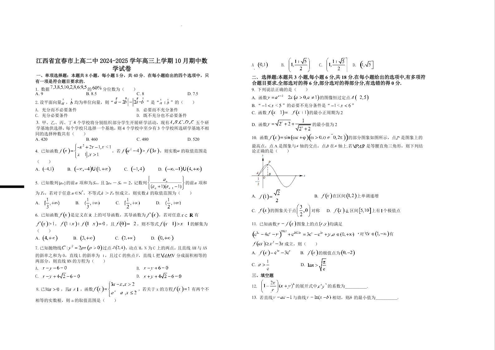 江西省宜春市上高二中2025届高三上学期10月期中考试数学+答案