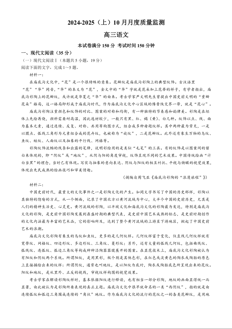 辽宁省部分高中2025届高三上学期10月月考语文试题