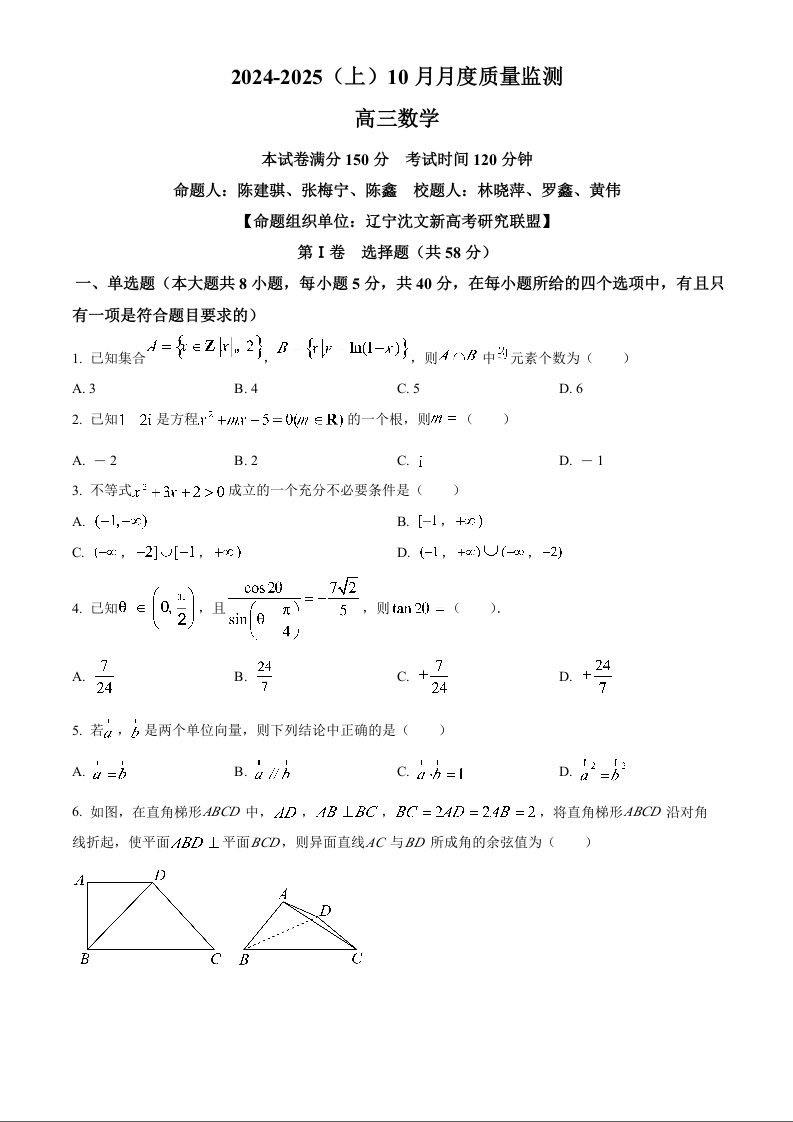 辽宁省部分高中2025届高三上学期10月月考数学试题