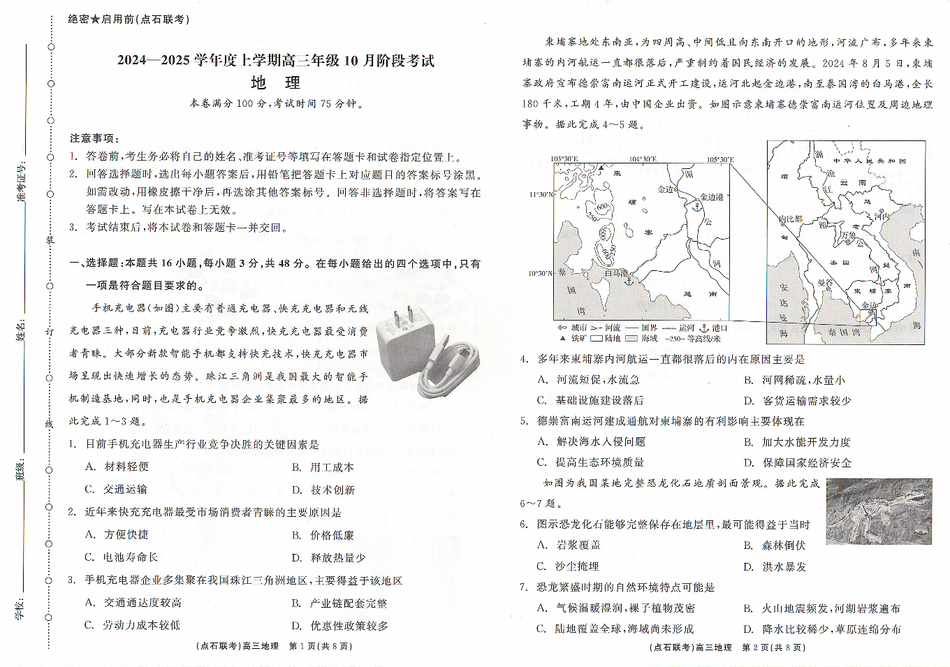 辽宁省点石联考2024-2025学年度高三上学期年级10月阶段考试地理试题