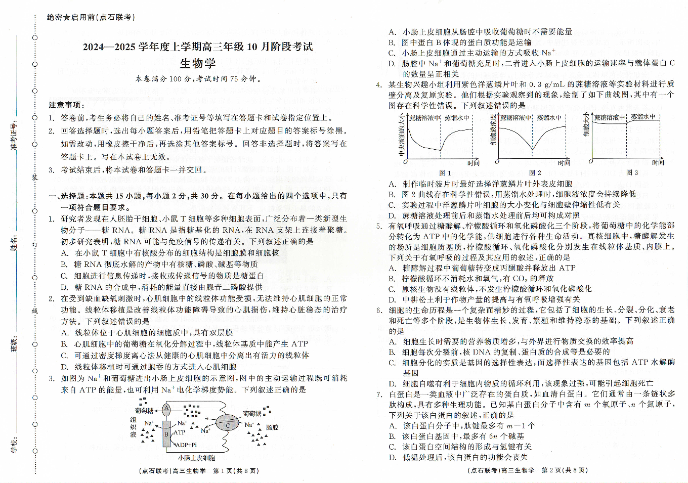 辽宁省点石联考2024-2025学年度高三上学期年级10月阶段考试生物试题