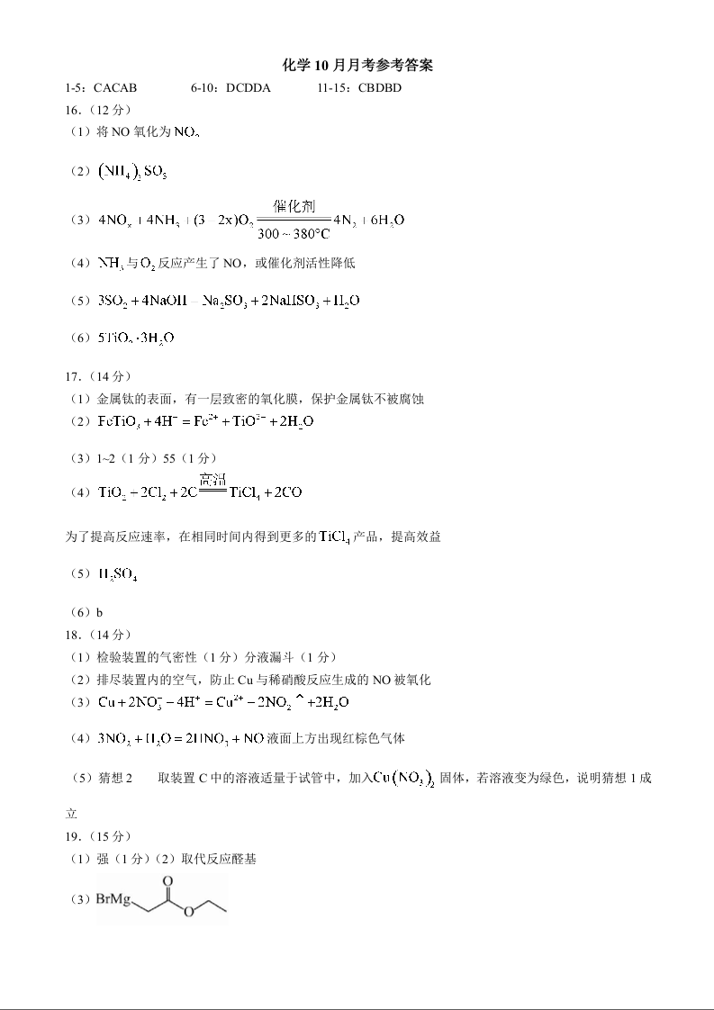 辽宁省沈阳市2025届重点学校高三上学期10月月考化学答案