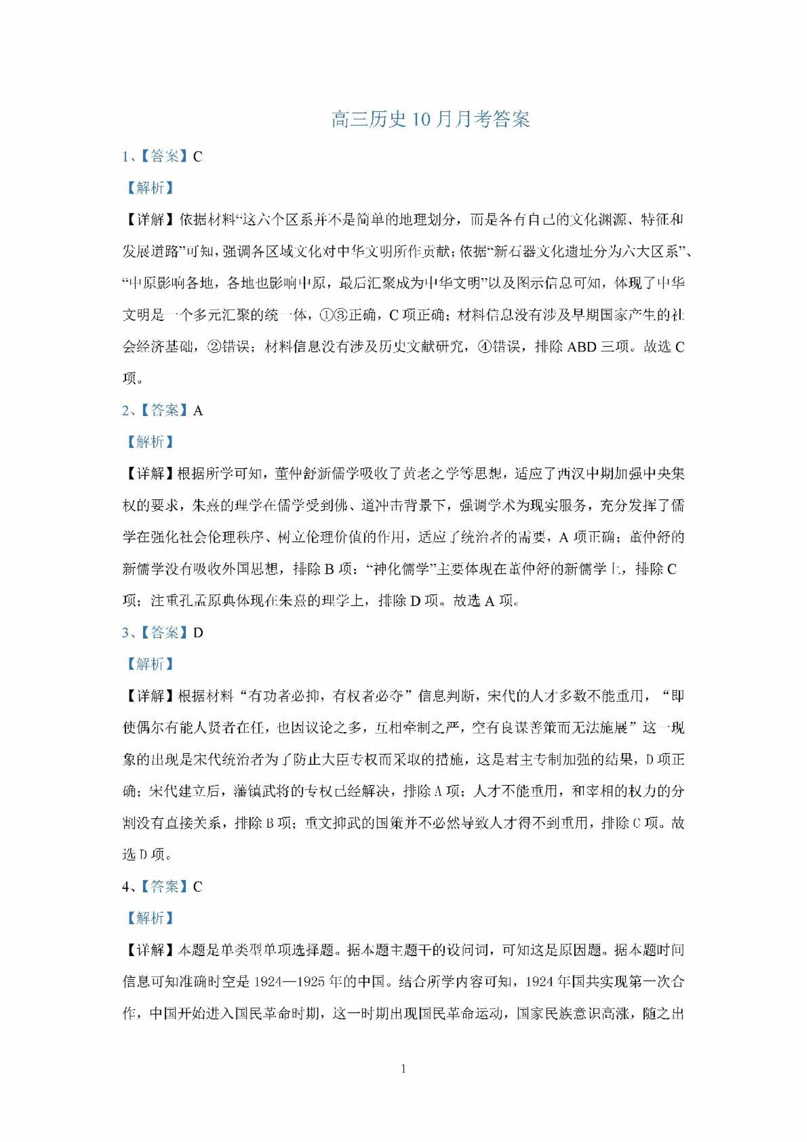辽宁省沈阳市2025届重点学校高三上学期10月月考历史答案