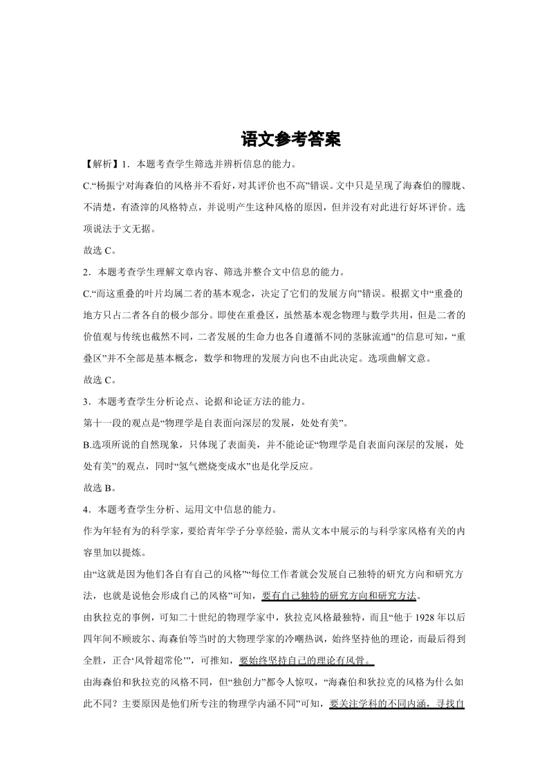 四川省成都列五中学2024-2025学年高三上学期9月月考物理试题 语文答案