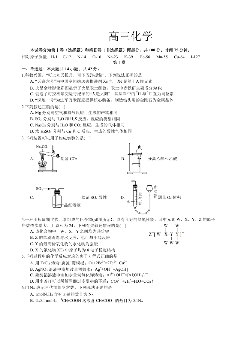 四川省成都列五中学2024-2025学年高三上学期9月月考化学试题