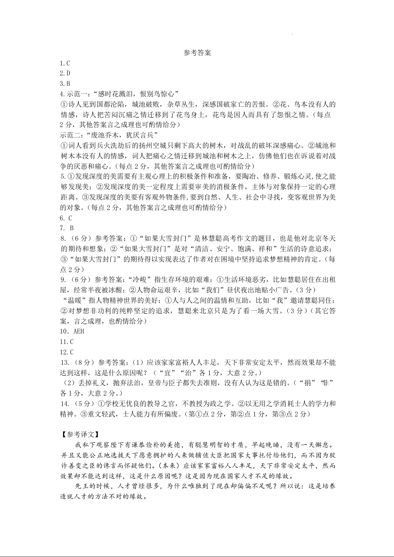 四川省成都市石室中学2024-2025年学度上期高2025届10月考试语文答案