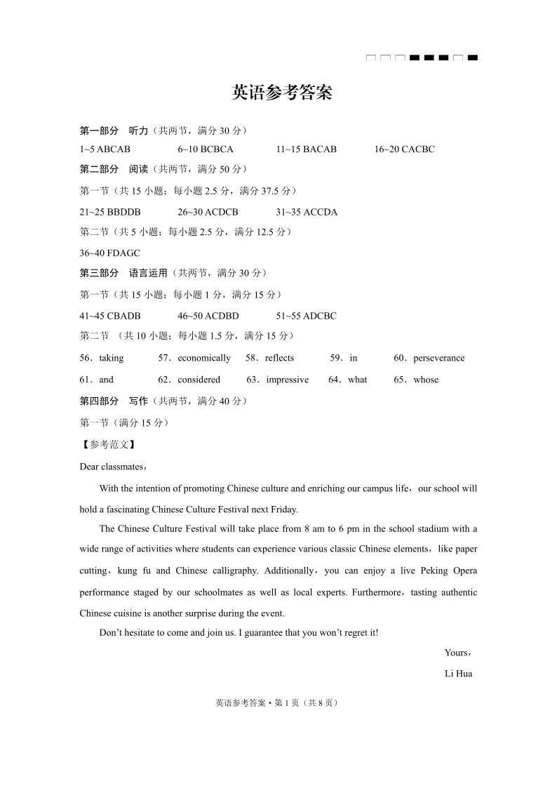 云南师范大学附属中学2025届高三高考适应性月考卷(四)英语答案
