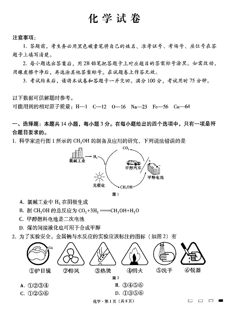 云南师范大学附属中学2024-2025学年高三上学期10月月考化学