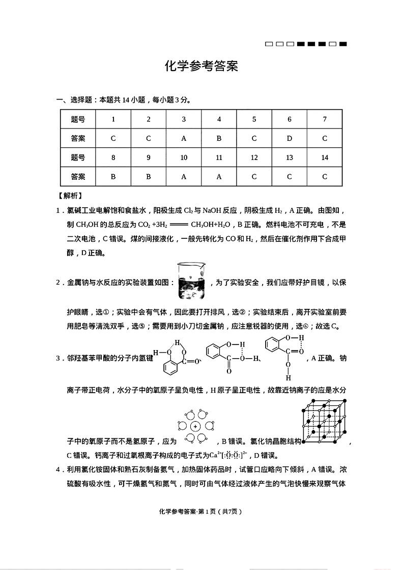 云南师范大学附属中学2025届高三高考适应性月考卷(四)化学答案
