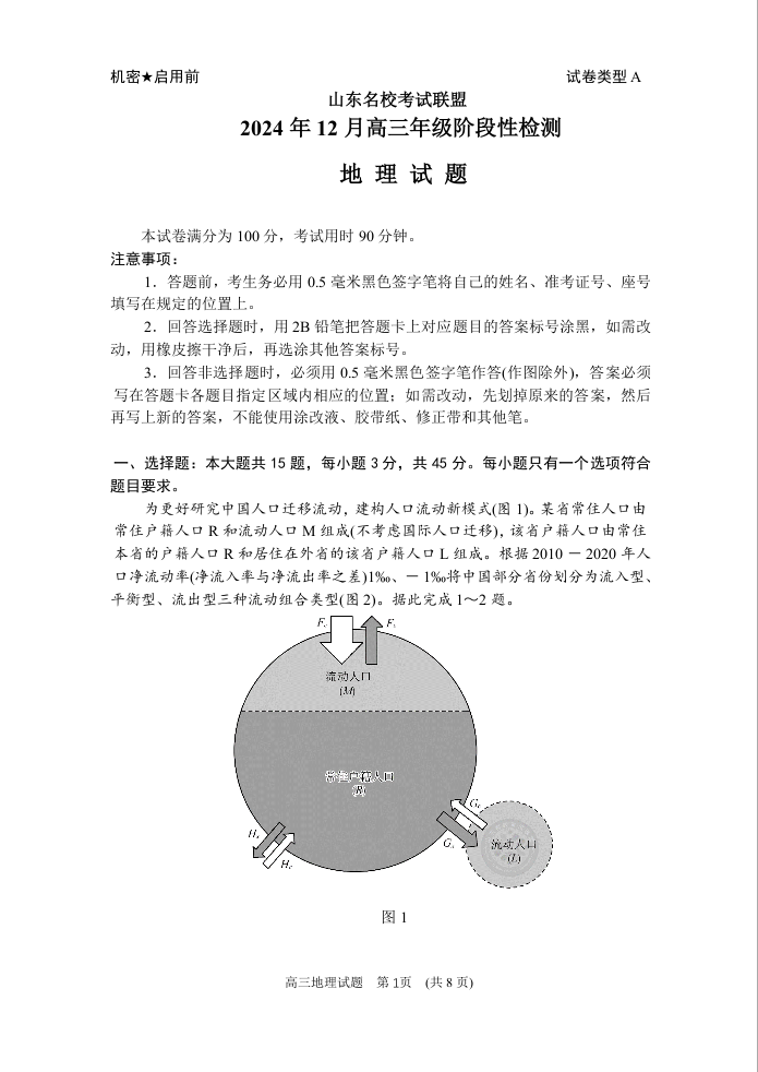 山东省济南名校考试联盟2024.12高三年级阶段性测试地理
