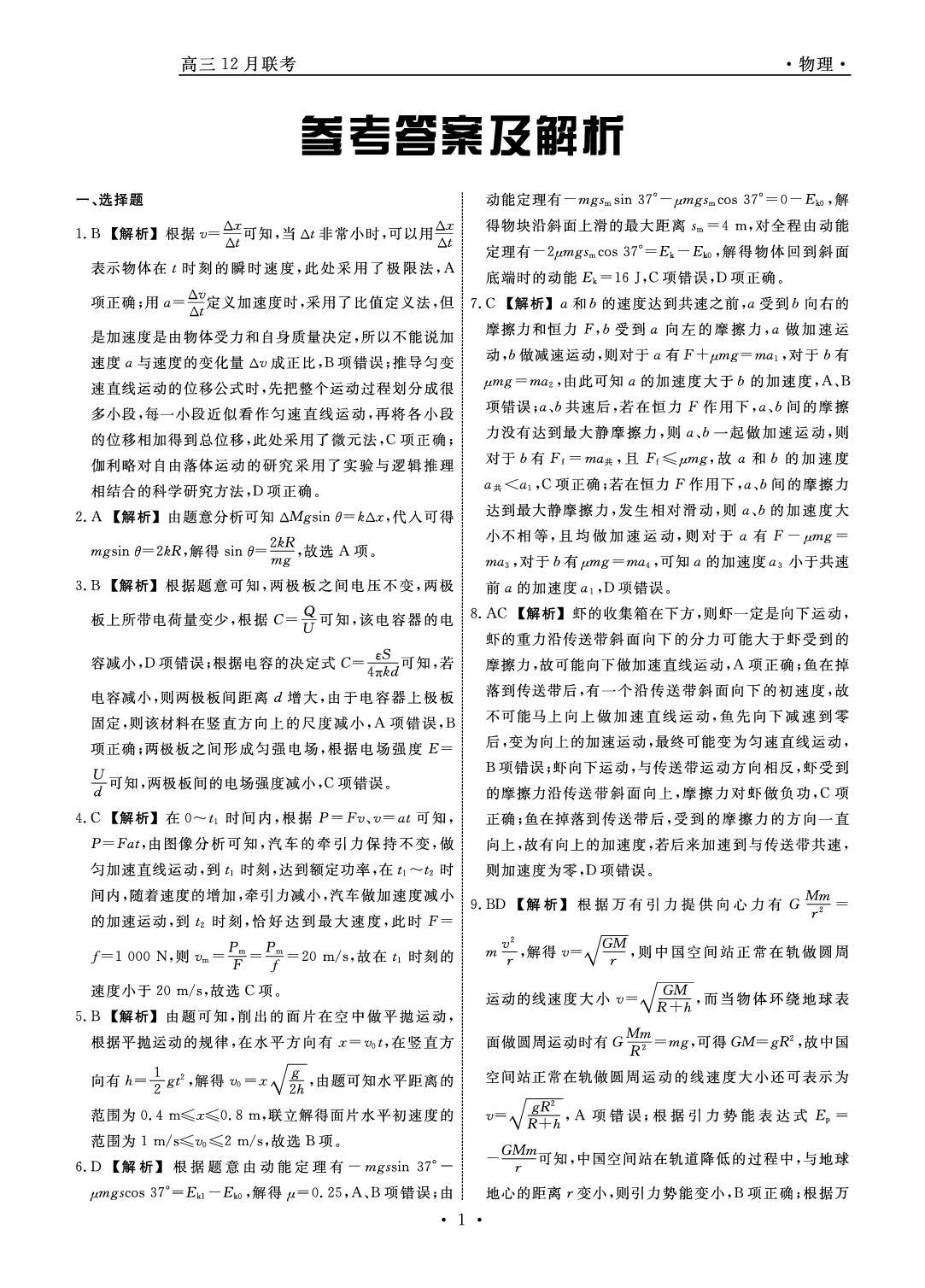 辽宁省名校联盟2024年高三12月份联合考试物理答案