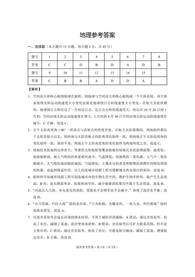 重庆市第八中学2025届高考适应性月考卷(二)地理答案