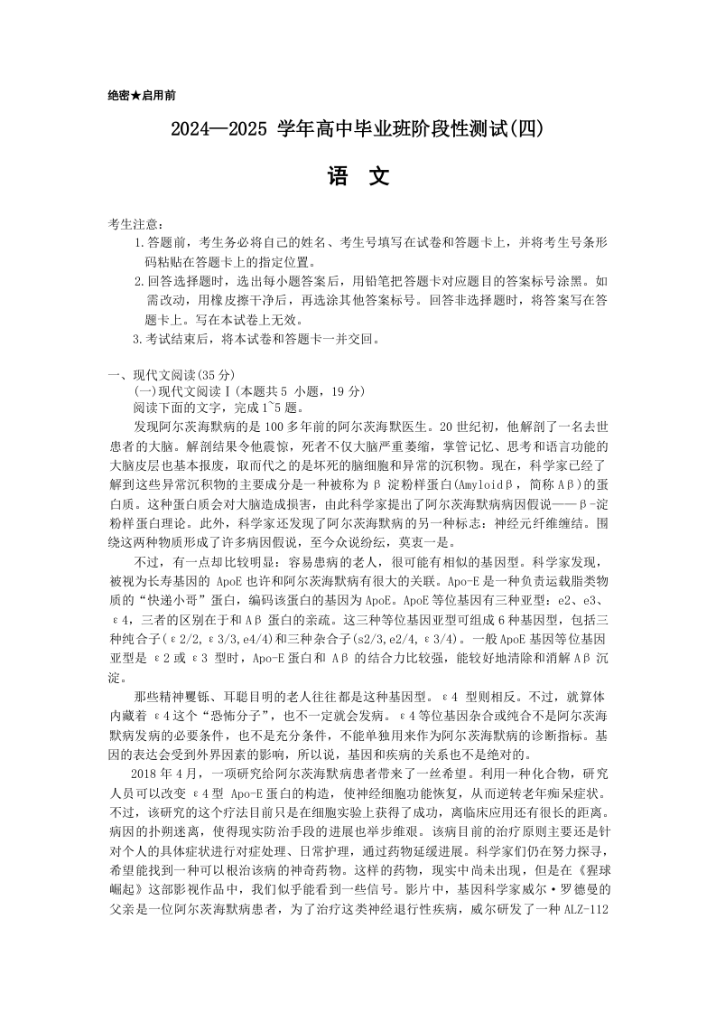 河南省天一大联考2025届高中毕业班阶段性测试(四)语文