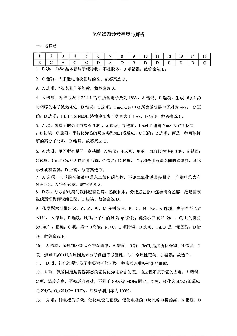 湖北省腾云联盟2025届高三上学期12月联考化学答案
