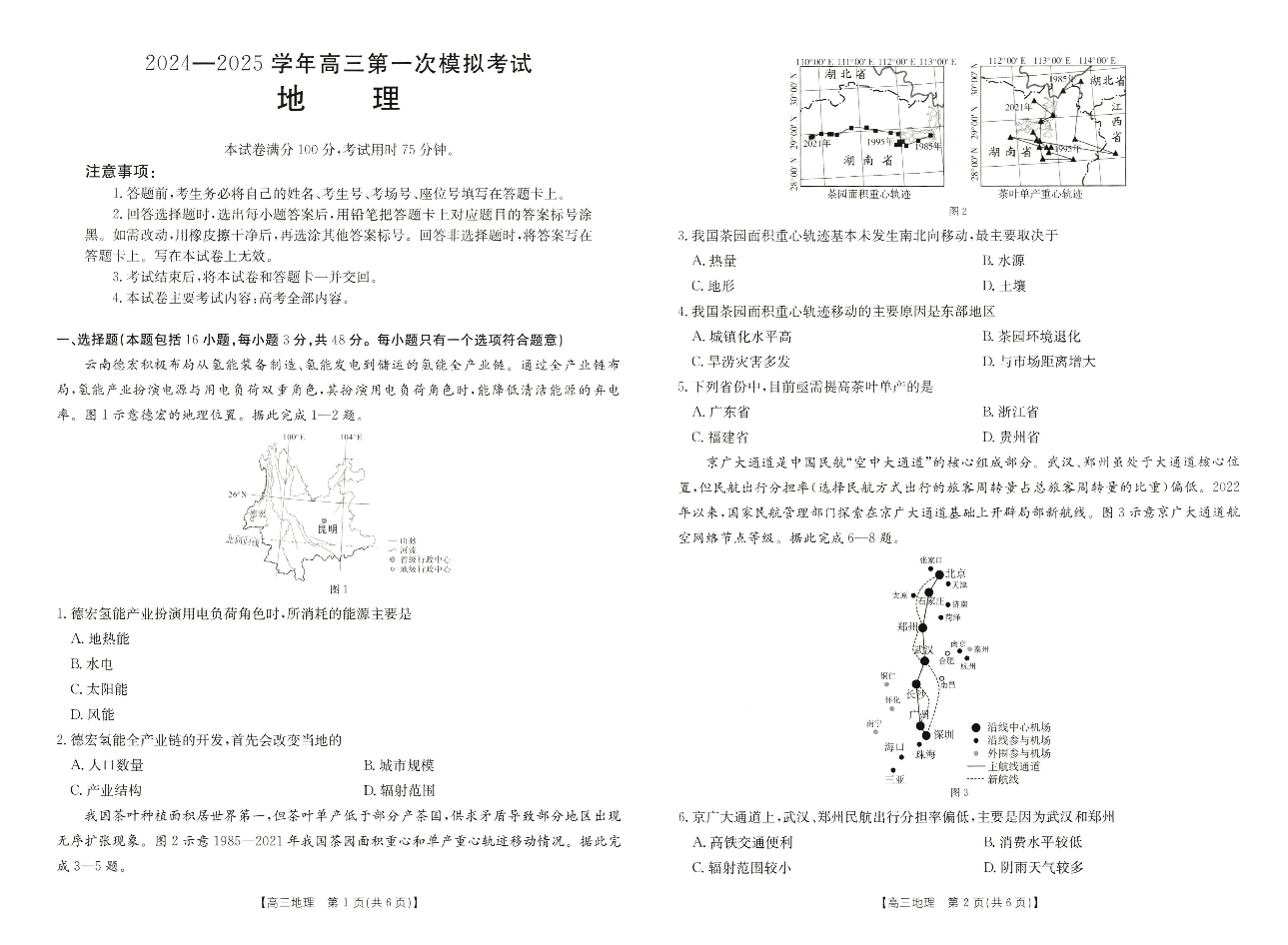 河南省新乡市2025届高三上学期第一次模拟考试地理