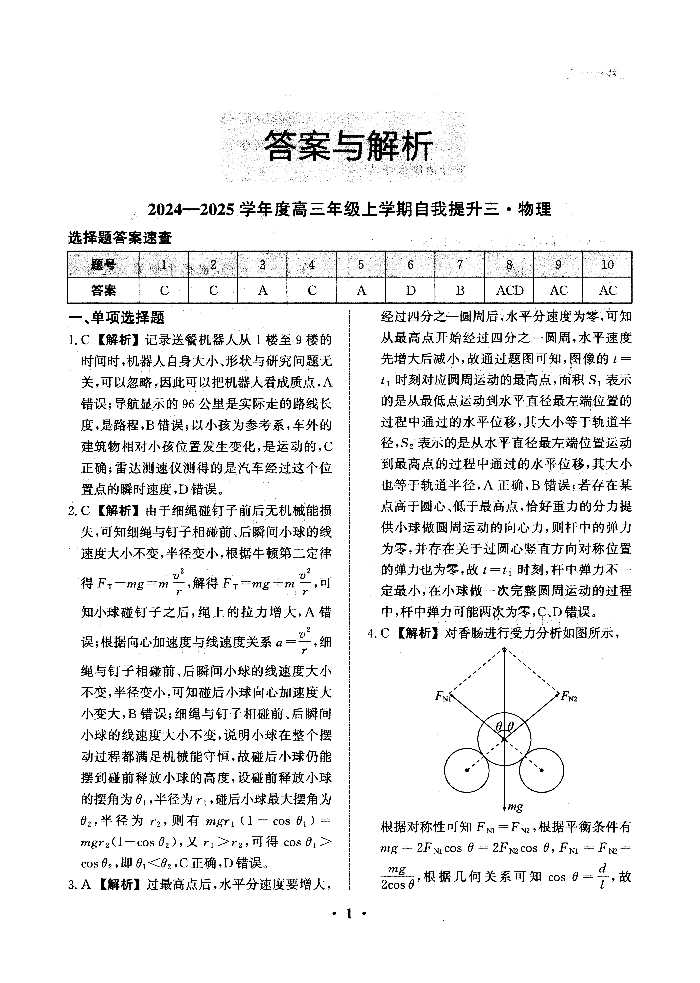 河北省衡水市冀州中学2025届高三上学期12月月考物理答案
