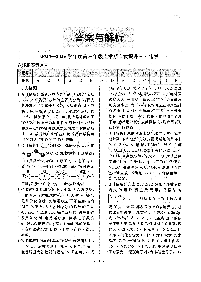 河北省衡水市冀州中学2025届高三上学期12月月考化学答案