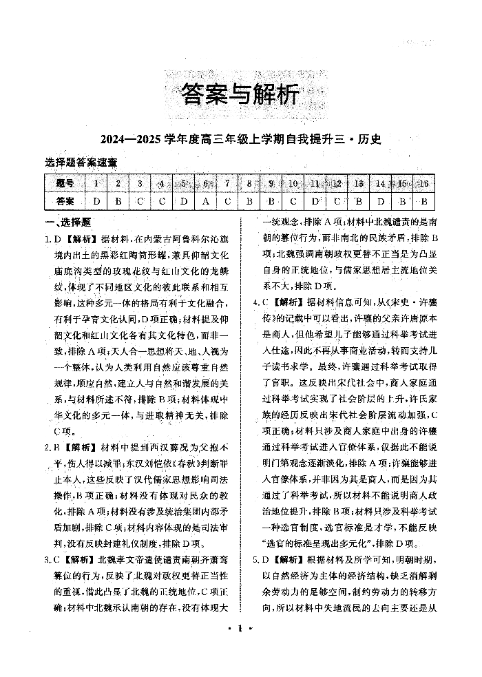 河北省衡水市冀州中学2025届高三上学期12月月考历史答案