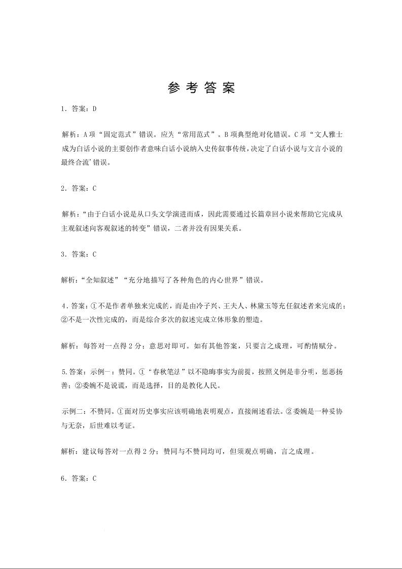 河南省焦作市博爱一中2023.9高三年级开学定位考试语文答案