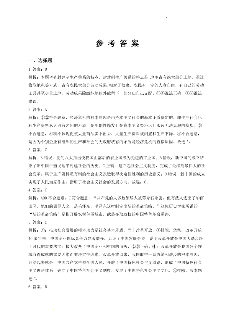 河南省焦作市博爱一中2023.9高三年级开学定位考试政治答案