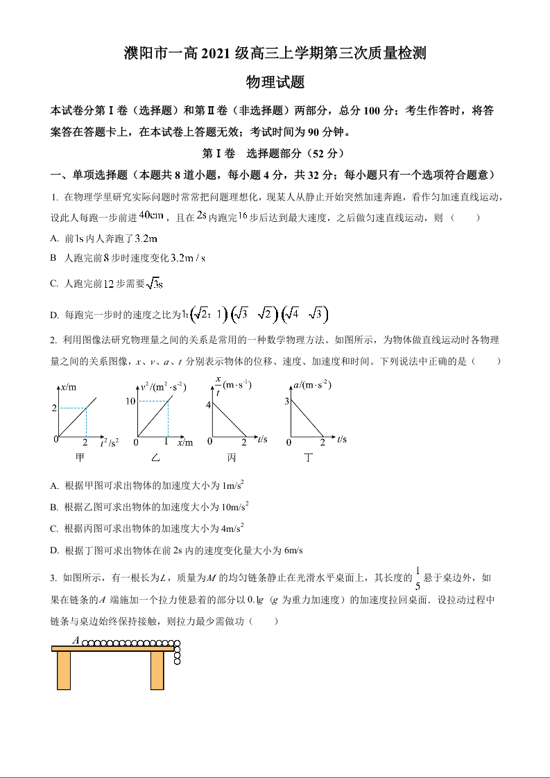 河南省濮阳市第一高级中学2024届高三上学期第三次质量检测物理+答案解析