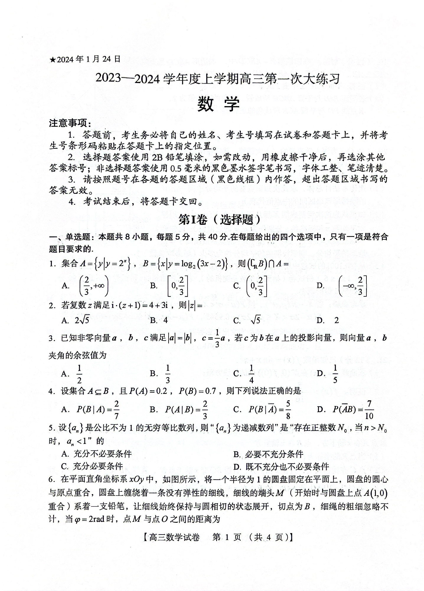 河南省三门峡市2023-2024学年度高三第一次大练习数学