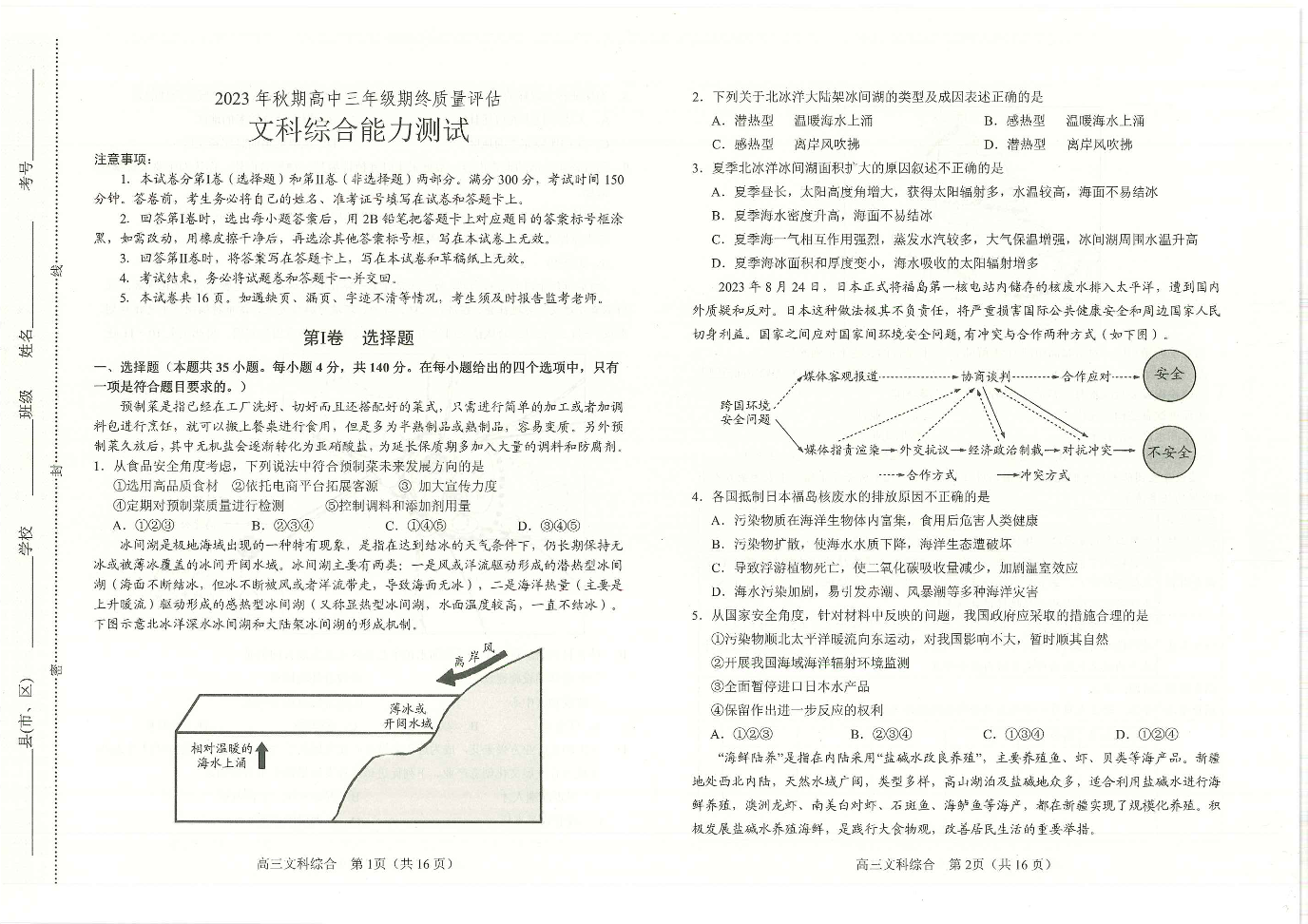 河南省南阳市2024届高三上学期1月期终质量评估文科综合试题