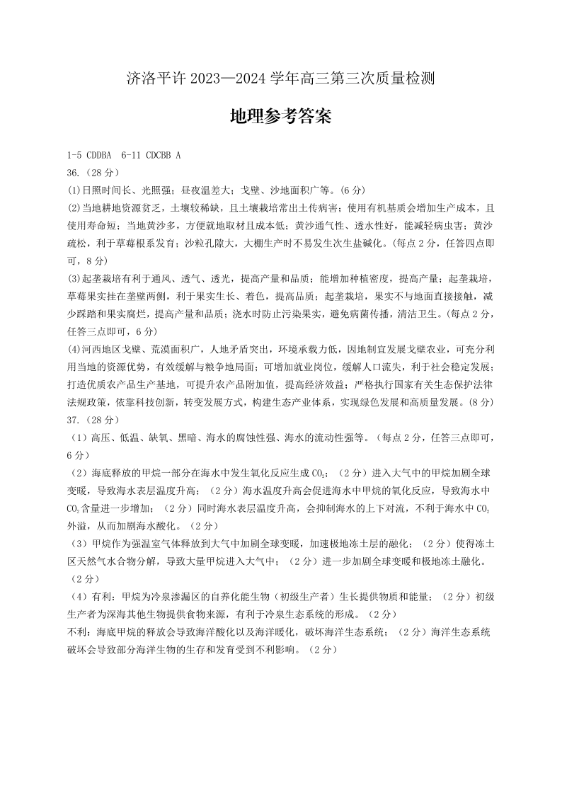 河南省济洛平许四市联考2024届高三下学期3月第三次质量检测地理答案